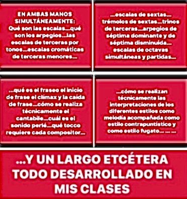 verdadera formación pianística. El método que aplico está fuertemente influido por la técnica trascendente del pianista Javier Alfonso, un referente clave en mi carrera.